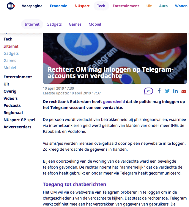 Het probleem is hier dat de politie graag de berichten in de Whatsappgroep wilt meelezen, maar dit niet mogelijk is door een tap te plaatsen. Whatsapp werkt klaarblijkelijk niet mee aan een bevel tot plaatsing van een telecommunicatietap.
