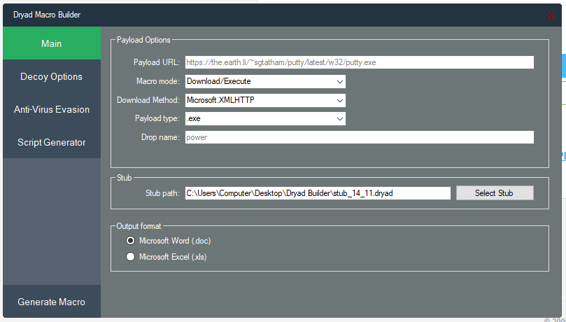 Nader onderzoek van de malware – ‘Dryad’ genaamd – toonde verschillende functionaliteiten aan, zoals (1) de mogelijkheid een uitvoeringsbestand te downloaden van een aangegeven URL, (2) de mogelijkheid (o.a.) een .exe-bestand op een computer te starten, (3) de bestandsnaam van de download te wijzigen, (4) verschillende functionaliteiten om antivirusprogramma’s te omzeilen, en (5) de functionaliteit een Word- of Excel-document te generen.
